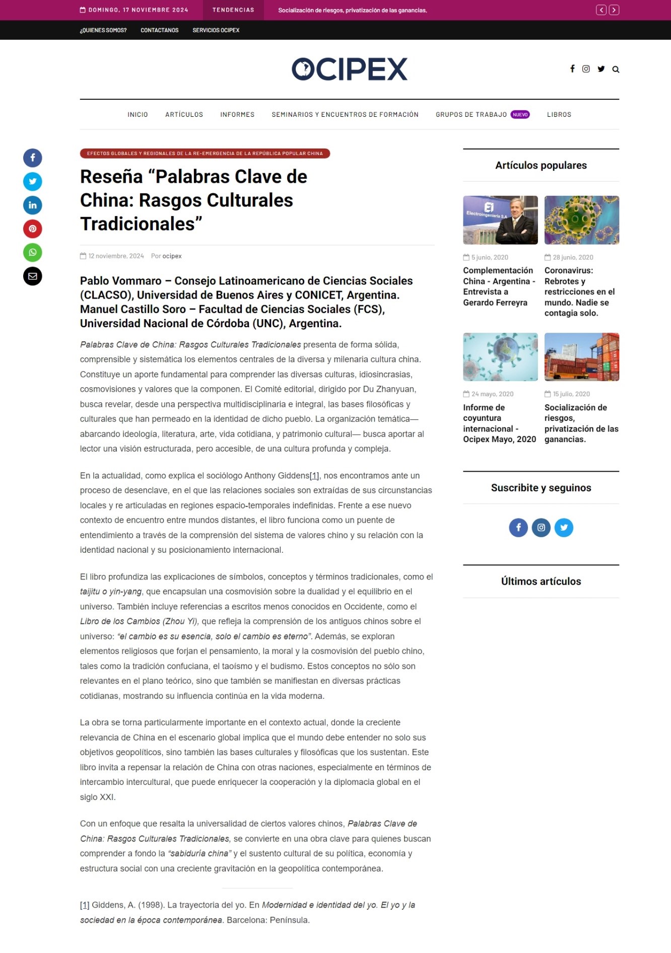 精彩评论:“Para América Latina y el Caribe, que enfrenta sus propios desafíos de desarrollo, integración y cohesión social, esta obra puede ser especialmente reveladora, pues algunos de los valores promovidos – como la ayuda mutua y la solidaridad – encuentran eco en sus historias y cosmovisiones. Así, se sugiere que este “intercambio de civilizaciones” va más allá de un acercamiento a la cultura China y se plantea como una invitación a profundizar las relaciones y fomentar una red de cooperación enfocada en el Sur Global.”