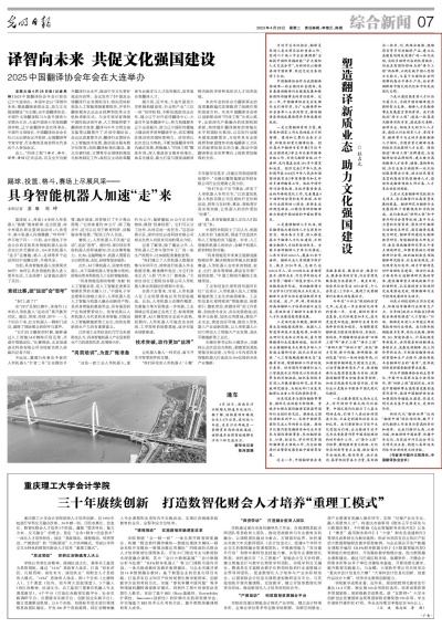 4月29日,《光明日报》刊发中国外文局局长、中国翻译协会会长杜占元署名文章《塑造翻译新质业态 助力文化强国建设》。以下为文章全文:
