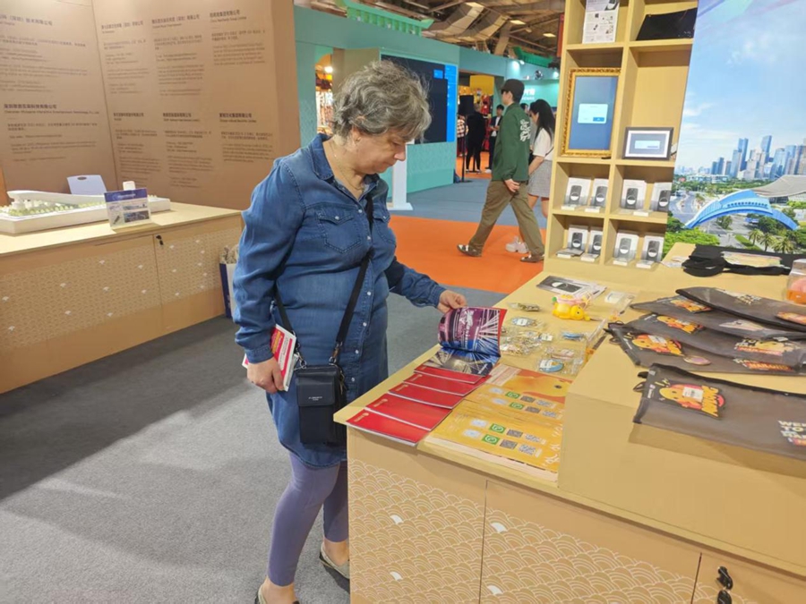 外国观众阅读金木堂宣传册 [当代中国与世界研究院 供图]