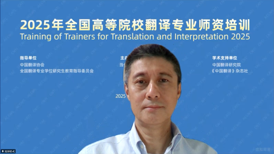 发布时间:2025-07-12 14:50:00 | 来源:中国翻译研究院 | 作者: | 责任编辑:郑成琼7月12日,由中国翻译协会、全国翻译专业学位研究生教育指导委员会指导,当代中国与世界研究院主办,中国翻译研究院、《中国翻译》杂志社给予学术支持的2025年暑期全国高等院校翻译专业师资培训开幕。中国外文局总编辑、中国翻译协会常务副会长兼秘书长、中国翻译研究院常务副院长高岸明出席线上开幕式并致辞,约1200人观看活动网络直播。