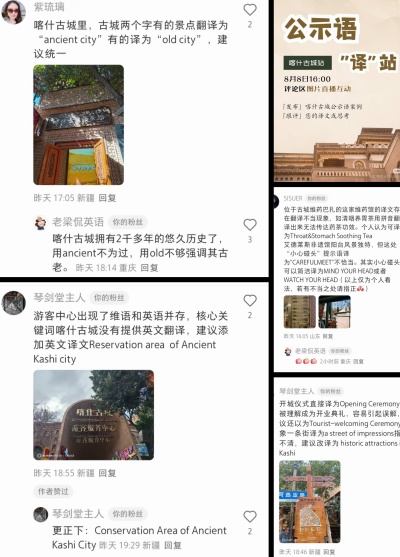 对谈嘉宾表示,应高度重视公示语翻译工作,建立多部门协调机制,有效提升公示语翻译水平;喀什的公示语翻译要融通中外文化,确保译文能让外国受众真正理解;应加快确立民族语文公示语翻译标准,加强专家库和语料库建设,完善审核与监督机制,加强翻译质量审核把关,提升民族地区多语种公示语翻译规范化水平;在涉及民族、宗教相关公示语的翻译中,需注意文化禁忌与礼仪规范。