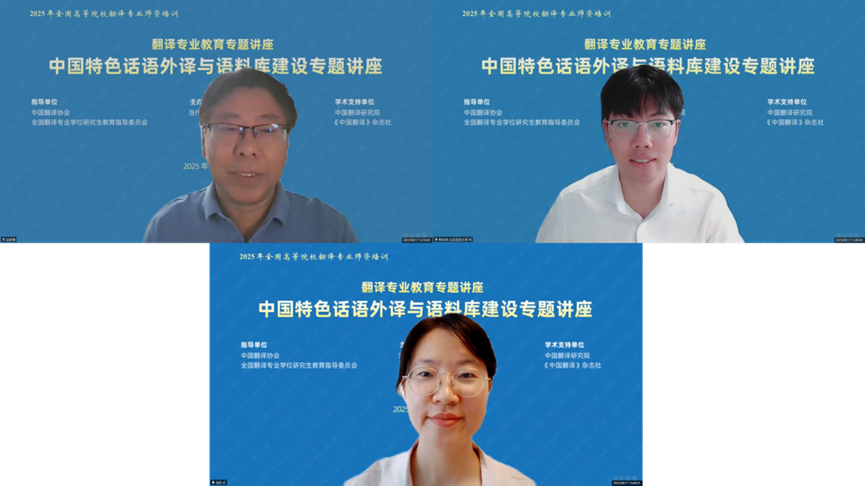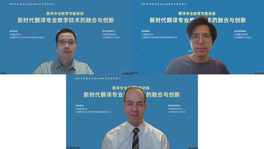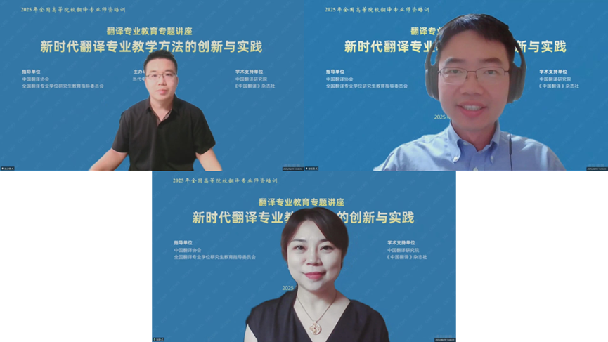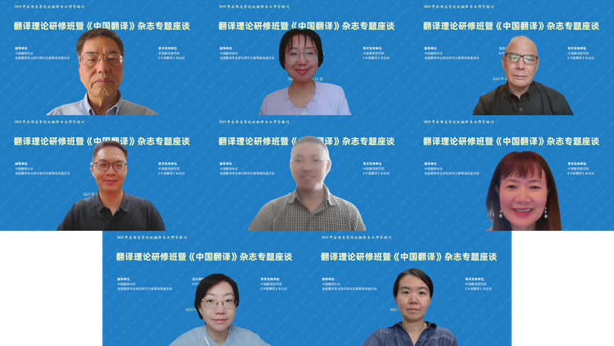 发布时间:2025-08-25 14:50:00 | 来源:中国翻译研究院 | 作者: | 责任编辑:郑成琼8月23日,为期近两个月的2025年暑期全国高等院校翻译专业师资培训圆满落幕。本次培训由中国翻译协会、全国翻译专业学位研究生教育指导委员会指导,当代中国与世界研究院主办,中国翻译研究院、《中国翻译》杂志社给予学术支持,吸引全国高校翻译专业教师、翻译行业从业者、国有企事业单位外事外宣工作人员等近2000人次线上参与。培训邀请来自国际翻译家联盟(FIT)、国际翻译高校联盟(CIUTI)、国际会议口译员协会(AIIC)等国际组织以及国内外顶尖高校的知名专家学者进行授课,课程设计科学严谨、内容丰富充实、课时安排合理、组织井然有序,受到授课专家与参训教师的一致好评。