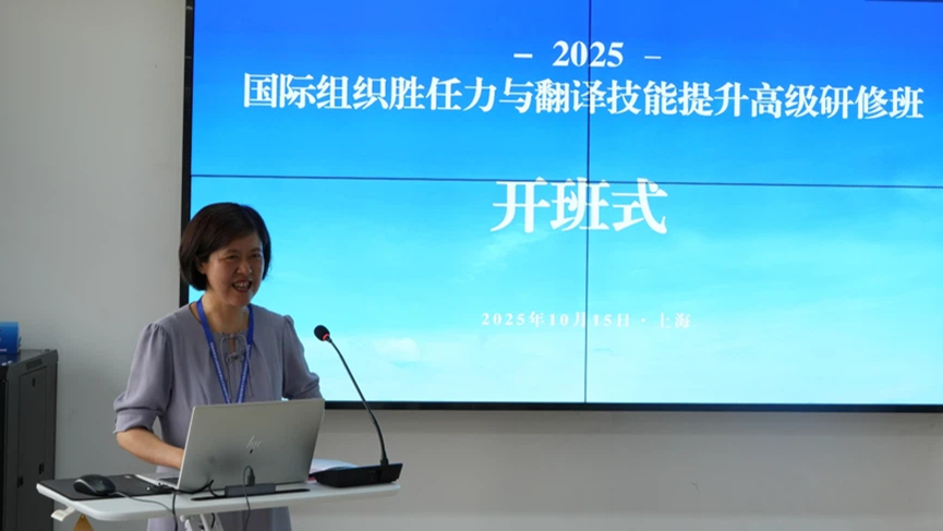 发布时间:2025-10-19 14:55:00 | 来源:中国翻译研究院 | 作者: | 责任编辑:郑成琼10月15至17日,2025年国际组织胜任力与翻译技能提升高级研修班在上海市成功举办。研修班由当代中国与世界研究院主办,上海理工大学外语学院承办,中国对外翻译有限公司协办,中国翻译研究院、《中国翻译》杂志社提供学术支持。来自全国高等院校、企事业单位等共40余人参加本次研修。上海理工大学副校长蔡永莲、当代中国与世界研究院翻译研究中心副主任王颖思等出席开班式并致辞。上海理工大学外语学院院长刘芹主持开班式。