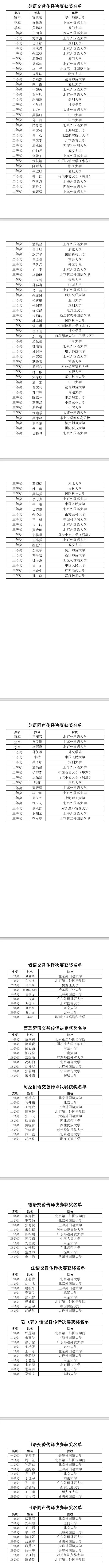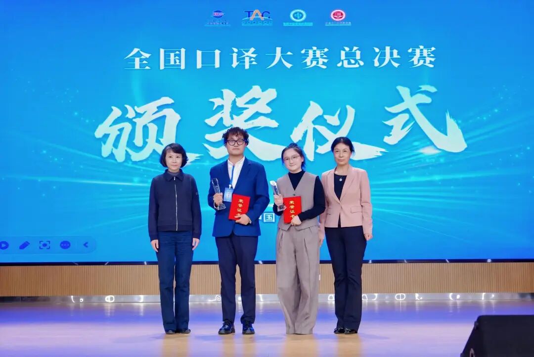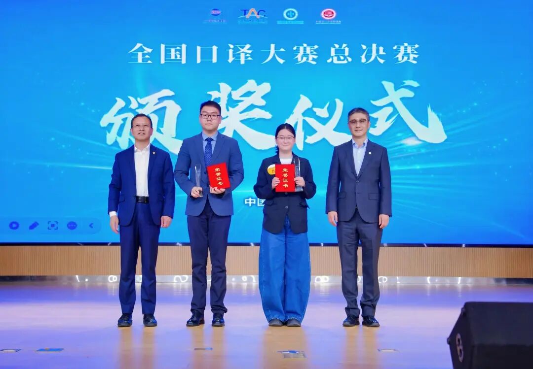 本届大赛于2025年12月27日正式启动,历时3个月,共有来自全国390余所院校的4000余名选手报名参赛,199名选手获奖。其中,一等奖19名、二等奖61名、三等奖119名。英语同声传译决赛和交替传译精英赛分别决出冠、亚、季军各1名。高岸明、李雅芳分别为冠、亚军选手颁奖。